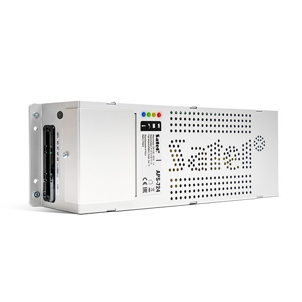 APS-724 on 24V DC akkuvarmennettu virtalähde 24V DC käyttöjännitettä tarvitseville laitteille, jotka kuuluvat hälytysjärjestelmään tai muihin asennuksiin.
