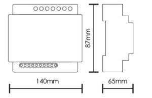 - 2 relelähtöä (potentiaalivapaa kosketin) jotka ovat ohjelmoitavia ja jotka voidaan liipaista hätä, vika tai testi tilanteessa.