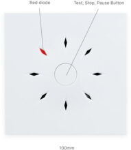 • Toiminnan tarkastus sekä vilkkuvalla merkkivalolla (LED) että testipainikkeella
