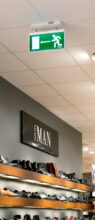 Tyylikäs LED-poistumistievalaisin jonka tekniset ratkaisut mahdollistavat helpon asennuksen sekä kaapeloinnin valaisimelle. Valaisin on kiinnitetty asennusjalustaan kääntyvillä varsilla joka mahdollistaa asennuksen kattoon tai seinään. Yksikkövalaisimessa on autotesti-toiminto joka indikoi mikäli lataus, valonlähde tai akku on epäkunnossa. Toimitukseen sisältyy opasteet.